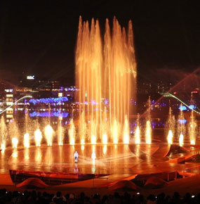 嘉華噴泉包括音樂、數控、大型投影、霧森、大小氣爆、激光表演等各類裝置元素數千組,水舞、水秀造型組合變化多端,得到更深刻的文化與藝術的享受。